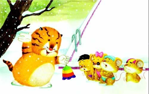 小花猫多难为情呀,它低下头,拿下脖子上的小铃铛,说:“你们也戴戴小铃铛吧!”