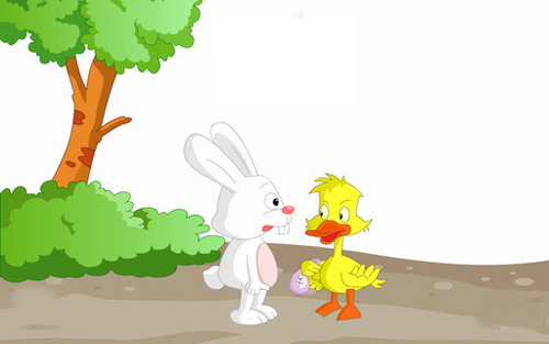 一天,小鸭子一交一到了一个好朋友,那就是小白兔。