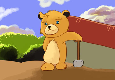 小熊住在石洞里。石洞夏天热,冬天冷。小熊想建造一间木房子,小熊拿着斧头到山上去砍树。
