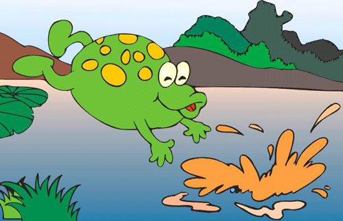 癞蛤蟆每天每天都在夜幕降临月亮升起时仰望,突然,他看到池塘里天上月亮的倒影,就在自己的面前,它觉得这是抓住月亮的好机会,扑通……一声跳了下去。“我抓住你了,”癞蛤蟆大声的叫喊着。