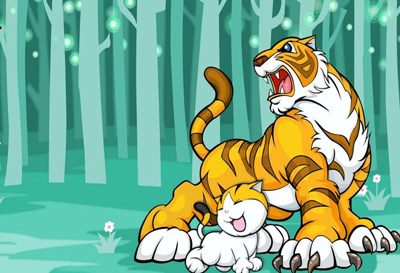 两只虎大王懒洋洋地趴在地上,看着动物们忙来忙去的,自己却悠闲极了。小狐狸聪聪说:“虎大王平时一吼,树木都会颤一动。今天让两位虎大王吼一下,看看谁厉害不就知道了。”“好!”“好!”大家都纷纷同意了。