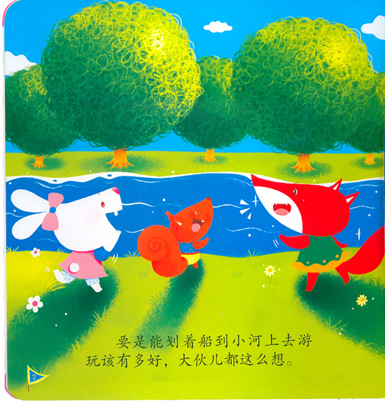 “要不我们来做一艘(sōu)小船吧。”兔子、小红狐、熊异口同声地说。