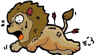 狮子遇见一只猫,也吓得转身就逃。逃啊,逃啊,狮子变得像老鼠一样小了。