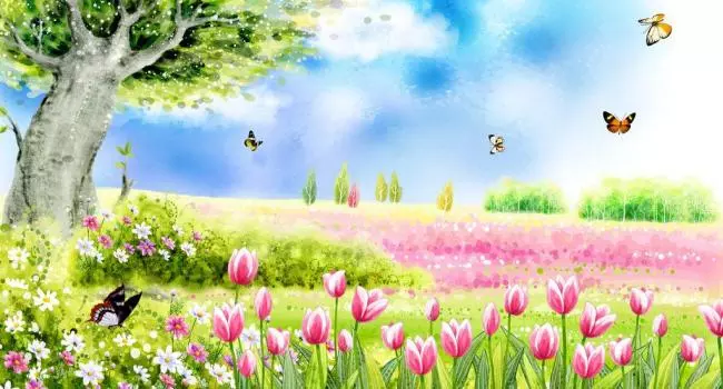 春天的时候,在空旷的原野上,朵拉兔栽下一棵矮矮的小树。