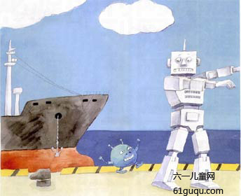 可是,有一天,小不点下班了,在家门口站了很久,也不见大块头来。小不点想:“大块头出什么事了?虽然我们没说过话,但我们是邻居啊!”他立刻朝大块头的码头跑去。哈,大块头一动不动地站在那里,大手臂横在空中。
