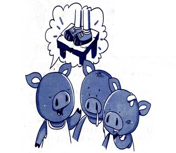 话说三只小猪在躲过大灰狼狼的追杀后,日子慢慢过得安稳起来,而大灰狼见小猪家的房子牢固,估计也占不到便宜,便把注意力放到小羊身上去了。三只小猪终于有时间慢慢地装修一下匆匆忙忙修建起来的新房子了。房子的水电未安装,老三决定给他们的砖房子安装上电灯、风扇,以度过即将到来的炎炎夏日。