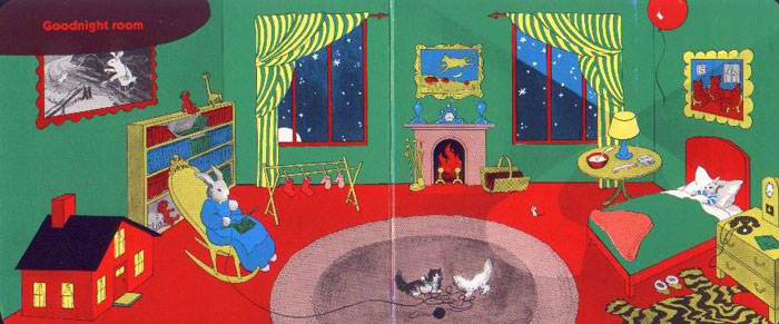 一幅画上,是一只正在跳过月亮的母牛;一幅画上,是三只坐在椅子上的小熊。