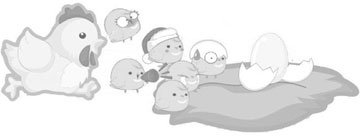 “一妈一妈一,弟弟怎么了?”一只小鸡担心地问。
