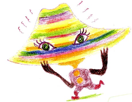 天一陰一了,下雨了。一阵大风吹来,刮跑了小黄狗的小草帽。小草帽飞呀飞,转眼间没影了。