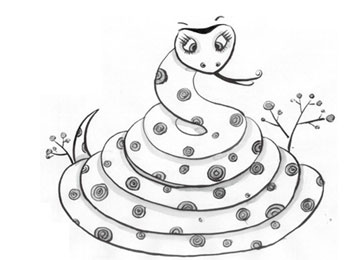 一天早晨,花蛇咕咕从山洞里钻出来。他抬头一看,说:“啊,天气真好,今天我要出去玩玩!”