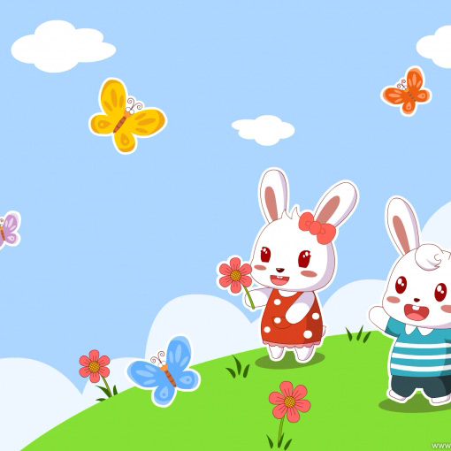 瞧! 小兔子的花园开满了各种各样的花, 美丽极了!春风把花香传得很远,蜜蜂、蝴蝶、小仓鼠和小鸟都来了!