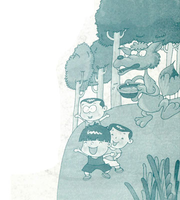 “我可不能吃这么脏的孩子!”快乐狼决定再回森林去打水。