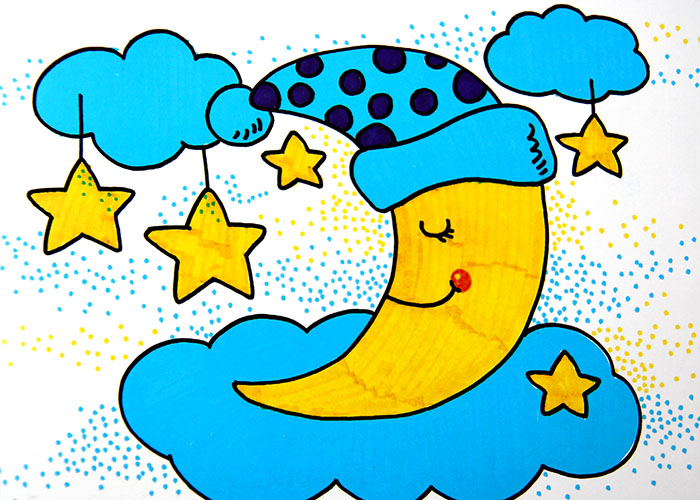 以后,月亮常常来听故事,可是他很小心,不会让自己再掉进池塘了。