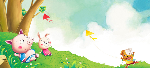 “啊,我真喜欢!”小白兔说着,把布条系在了长耳朵上,给胖小猪表演一个舞蹈。