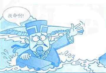 从前有个贾人,在外地置办了一批货物,走水路运往店里销售。船在河中顺风行驶,忽然浓云密布,狂风骤起,大雨倾盆,河水陡涨。贾人走出船仓查看货物,一股大一浪一袭向船头,把贾人拍落水中。贾人在水中挣扎呼喊:“救命呀!”